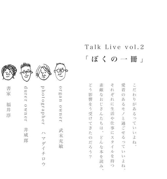 イベントのお知らせ Talk Live vol.2 「ぼくの一冊」